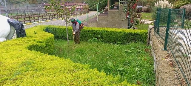 Belediyesi park ve sosyal alanların temizliğini düzenli olarak gerçekleştirirken, parklarda oluşan yabani ot ve çimlerin geri dönüşümünü hayvanat bahçesinde değerlendiriyor.