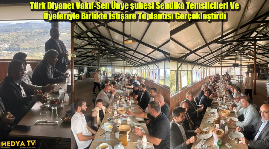 Türk Diyanet Vakıf-Sen Ünye şubesi 16.10.2024 Çarşamba günü İlçe Müftüsü sayın Ali Fuat Baycan, şube müdürü sayın Metin Kaçmaz, ilçe murakıbı sayın Mustafa Ocak, şube başkanı sayın Mustafa Özdin, Diyanet İşleri Başkanlığında faaliyet gösteren diğer sendika temsilcileri ve üyeleriyle birlikte istişare toplantısı gerçekleştirdi.