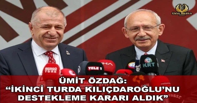 Millet İttifakı’nın cumhurbaşkanı adayı, CHP lideri Kemal Kılıçdaroğlu ile Zafer Partisi Genel Merkezi'nde bir araya gelen Ümit Özdağ, ikinci turda Kılıçdaroğlu'nu destekleme kararı aldıklarını duyurdu.