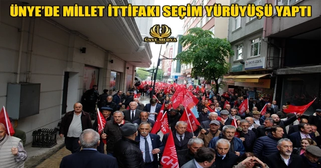 14 Mayıs seçimlerine saatler kala Cumhuriyet Halk Partisi, İYİ Parti, Saadet Partisi ilçe teşkilatları başta olmak üzere Millet İttifakı bileşeni siyasi partiler Ünye Fevzi Çakmak Mahallesi Fevzi Çakmak Caddesi Kefeli Camisinden başlayıp Cumhuriyet Meydanı’nda sona eren yürüyüş düzenledi.