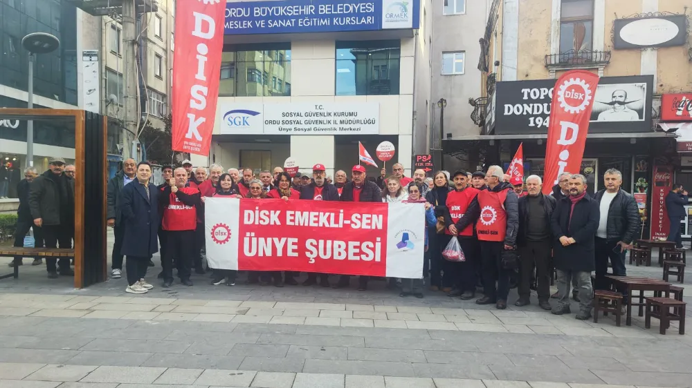 Devrimci Emekliler Sendikası ( DİSK ) Ünye Şubesi, Ocak 2026’da emekli ve memur maaşlarına yapılacak zam oranlarını “sefalet ücreti” olarak nitelendirerek Ünye Döner Çeşme Meydanı’nda bir basın açıklaması düzenledi. Eyleme CHP Ünye İlçe Başkanı İsa Maral ve yönetimi ile Saadet Partisi üyeleri de katılarak dikkat çekici bir siyasi tablo oluşturdu.