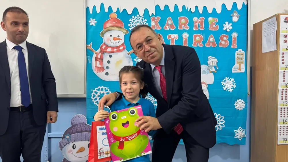 Bu yıl ilk kez okula başlayan birinci sınıf öğrencileri, eğitim hayatlarındaki ilk karnelerini almanın mutluluğunu yaşadı. Tören, öğrencilerin karne heyecanı ve yarıyıl tatili sevinciyle renklendi.