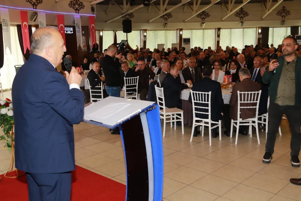Siyasi parti ilçe başkanları ve oda başkanlarının sırasıyla Ünyelilerin bayramını kutlaması ile başlayan programda konuşan Belediye Başkanı Hüseyin Tavlı, “ Başı rahmet, ortası mağfiret, sonu cehennem azabından kurtuluş olan Mübarek Ramazan ayını idrak ettiğimiz gibi aynı şekilde bayrama da kavuşmanın sevinç ve mutluluğunu yaşıyoruz. Geçtiğimiz yıl ülkemizde meydana gelen deprem nedeniyle bayramı buruk bir şekilde idrak etmiştik. Bu yıl da 7 aydır Filistin topraklarında devam eden Müslümanların İsrail tarafından zulüm altında olması nedeniyle Bayramı buruk bir sevinçle yaşıyoruz. Tabi ki hem dualarımız hem de elimizden gelen imkanlarla Müslüman kardeşlerimizin her zaman yanında olduk, olmaya devam edeceğiz” dedi.
