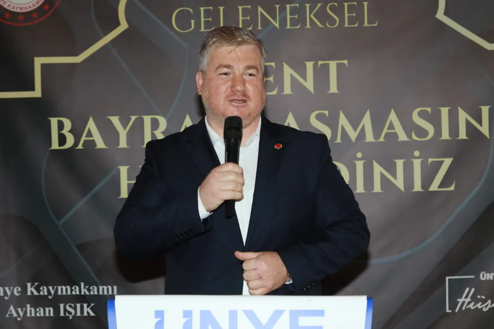 Ünye Kaymakamı Ayhan Işık ise yaptığı konuşmada şu ifadelere yer verdi; “iftar sofralarında bir araya geldiğimiz, karşılıklı yardımlaşma ve dayanışmanın da en güzel örneklerini sergilediğimiz Ramazan ayını geride bırakmanın hüznünü, bayrama ulaşmanın sevincini yaşıyoruz. Fakat İsrail’in Gazze halkına yaptığı zulüm nedeniyle buruk bir bayram idrak ediyoruz. Bu vesile ile Ramazan Bayramı’nın ülkemize, İslam alemine ve bütün insanlığa hayırlar getirmesini, huzur ve barışa vesile olmasını diliyorum. Tüm vatandaşlarımızın bayramını kutluyorum.”