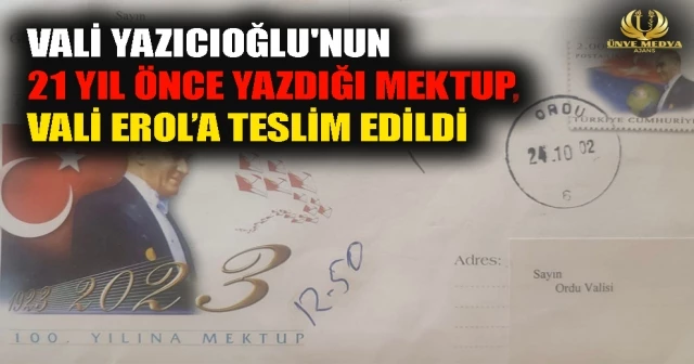 Ordu eski Valisi Kemal Yazıcıoğlu’nun 2002 yılında Cumhuriyetin 100 yılı için Ordu Valisi’ne yazdığı mektup valiliğe ulaştı.