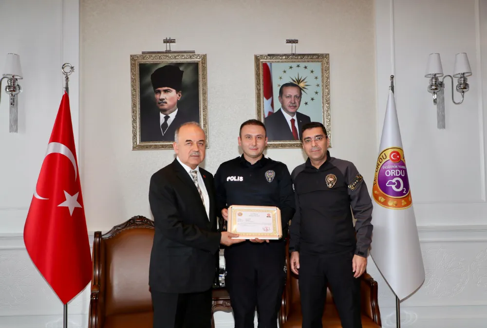 Valilik Makamında gerçekleştirilen törende İl Emniyet Müdürü Atilla Aksoy, İl Emniyet Müdür Yardımcısı Murat Petek ile Asayiş Şube Müdür Vekili Emniyet Amiri Ethem Çakır da hazır bulundu.