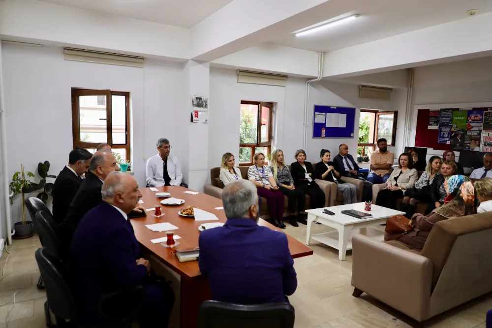 Öğrencilere derslerinde başarı dileklerini ileten Vali Muammer Erol, daha sonra öğretmenler odasında, okulda görev yapan öğretmenlerle bir araya geldi.