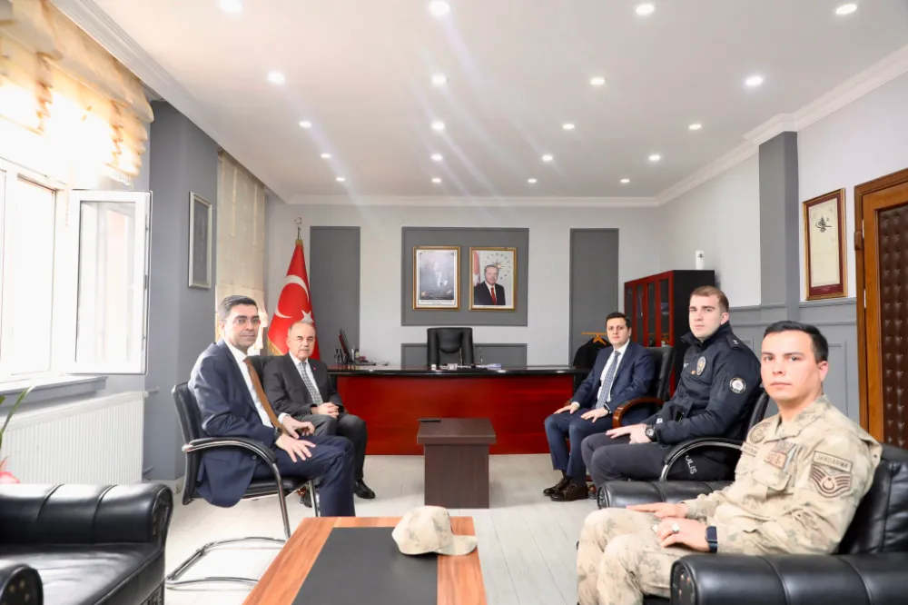 Mesudiye programı kapsamında, İlçe Emniyet Amirliği ile İlçe Jandarma Komutanlığını da ziyaret eden Vali Muammer Erol, İlçe Emniyet Amiri Muhammet Furkan Kapısız ve İlçe Jandarma Komutan Vekili Astsubay Üstçavuş Beytullah Bayrak’dan ilçenin güvenlik ve asayiş durumu hakkında bilgi aldı.
