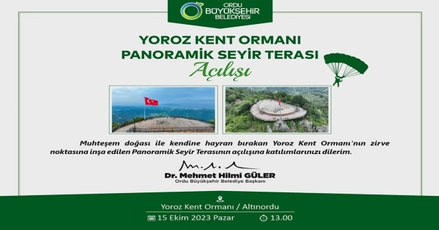 ‘YOROZ KENT ORMANI VE PANORAMİK SEYİR TERASI’ 15 EKİM PAZAR GÜNÜ ZİYARETE AÇILIYOR